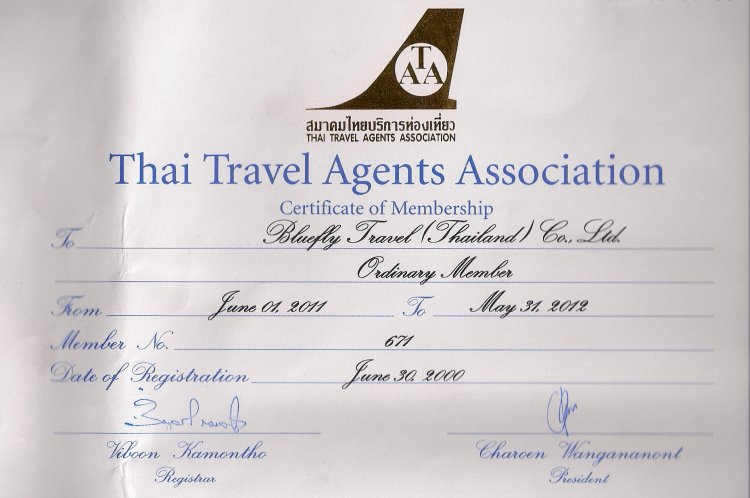 ตัวแทนจำหน่ายบัตรโดยสารระหว่างประเทศ สายการบินไทย เลขที่ TG-I 0191/352 0218 2